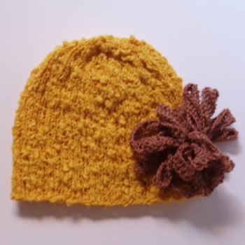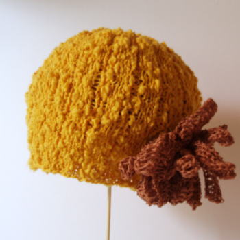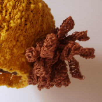 ハリのある糸をテープ状に編み、無造作にくしゃっとまとめて付けています。