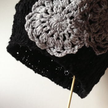 本体はコットンのスラブ糸と麻を合わせて、ややしっかりめの編地です。