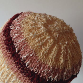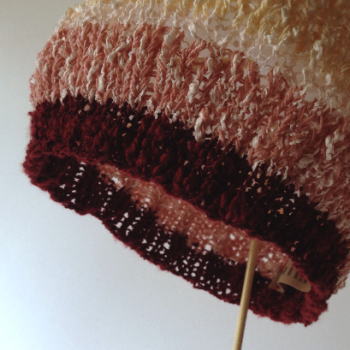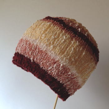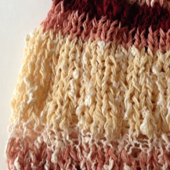 サラサラした手触りの糸でざっくりと編んでいますので、