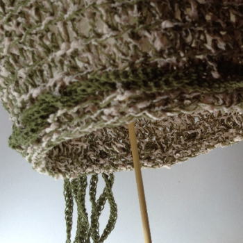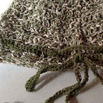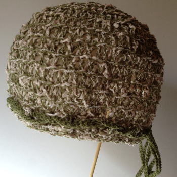 顔回りには抹茶色の糸をリボン状にねじりながら二重に、