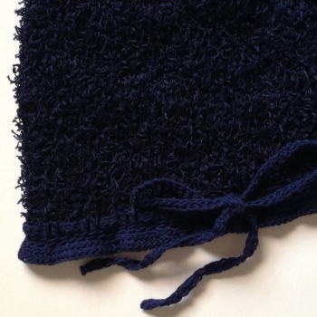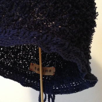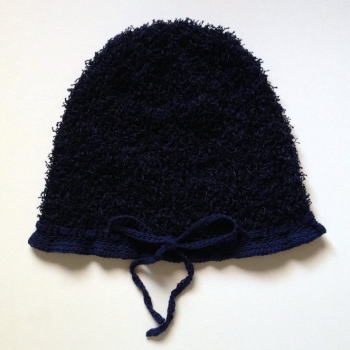| NO.11502 MATERIAL: 綿100% COLOR: ネイビー SIZE: F PRICE: \8000(税込) ふさふさした毛足の長い、粗いパイルのような糸。 厚さがあるように見えますが、ざっくりと編んでいますので通気性があります。 後染め糸で、きれいな濃紺(制服のような基本の紺)です。 顔周りにリボンを通していますので、多少のサイズ調整ができ、 深さがありますので、トップは後ろやサイドに流したり、潰して被ったりできます。 14-15A/WのNO.21402と同じ形ですのでご参考にしてください。 平置きの状態で深さは21センチ〜22センチ程です。 *こちらの商品は受注制作です。お届けまで2週間前後お時間を頂きます。 |