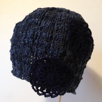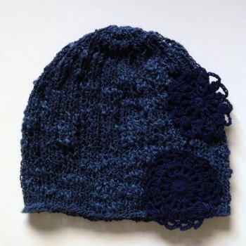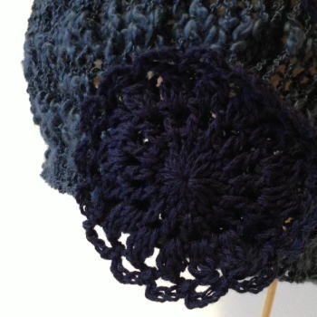 サイドに濃紺のコットンのモーチーフ付。