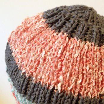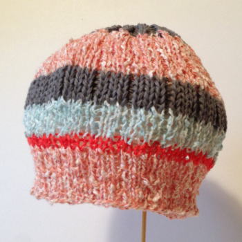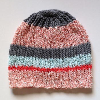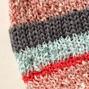 さらさらした手触りの軽い素材でざっくり編んだ、丸みある定番の形です。