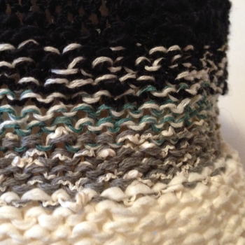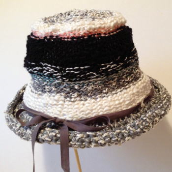 数種類の糸を使った、小さめのブリム付きです。