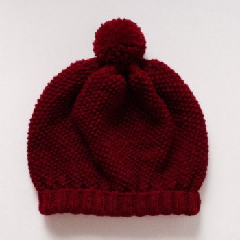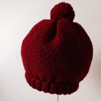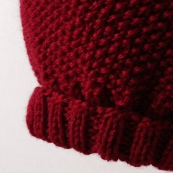 並合太のストレートヤーンで、全体を鹿の子編み(ボコボコした表面)で編んでいます。