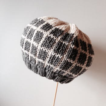 とても手触りが良く、柔らかい糸を使った格子柄のベレータイプ。